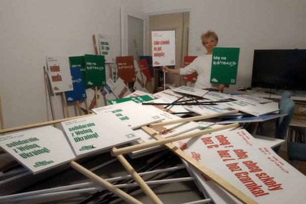 Akcja Demokracja przygotowuje setki transparentów, tysiące ulotek, wielkie transparenty i wystąpienie naszej dyrektorki, Karoliny Skowron-Baki, które, mamy nadzieję, będzie pamiętane przez długi czas. W organizację marszu angażują się aktywiści i aktywistki zrzeszone w społecznych sztabach wyborczych – to dzięki nim nasz ruch będzie dużą, kolorową i widoczną częścią Marszu.
