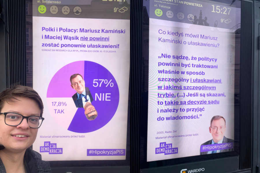 1 sierpnia, w 75 rocznicę wybuchu Powstania Warszawskiego, w centrum Warszawy zawiśnie ogromny billboard z hasłem „Warszawa wolna. Bez faszyzmu”, sfinansowany w całości przez aktywistów i aktywistki Akcji Demokracji.