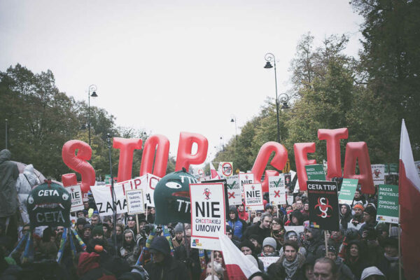 Od samego początku angażowaliśmy się w działania przeciwko umowom handlowym ze Stanami Zjednoczonymi i Kanadą – TTIP i CETA, zainicjowane przez międzynarodową sieć Seattle to Brussels, powstałą po protestach alterglobalistycznych w 2009 roku. Szczególny sprzeciw naszego ruchu budził mechanizm sądów arbitrażowych, który pozwala korporacjom pozywać demokratyczne państwa i uzyskiwać wysokie odszkodowania z pieniędzy podatników. Mógł on wywoływać efekt mrożący i powstrzymywać konkretne kraje przed działaniami w interesie środowiska i podatników. W koalicji z innymi organizacjami z całej Europy próbowaliśmy powstrzymać przyjęcie tych umów.