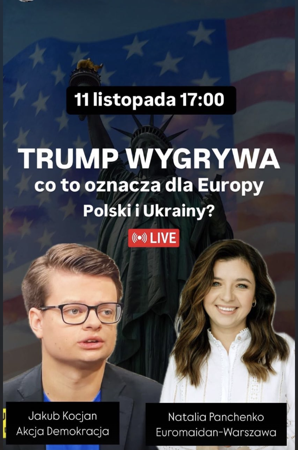 Zapraszam na dzisiejszy live na Instagramie, gdzie wraz z Natalia Panchenko będziemy rozmawiać o skutkach wygranej Trumpa dla Europy, Polski i Ukrainy. Zapraszam do dołączenia i zadawania pytań!