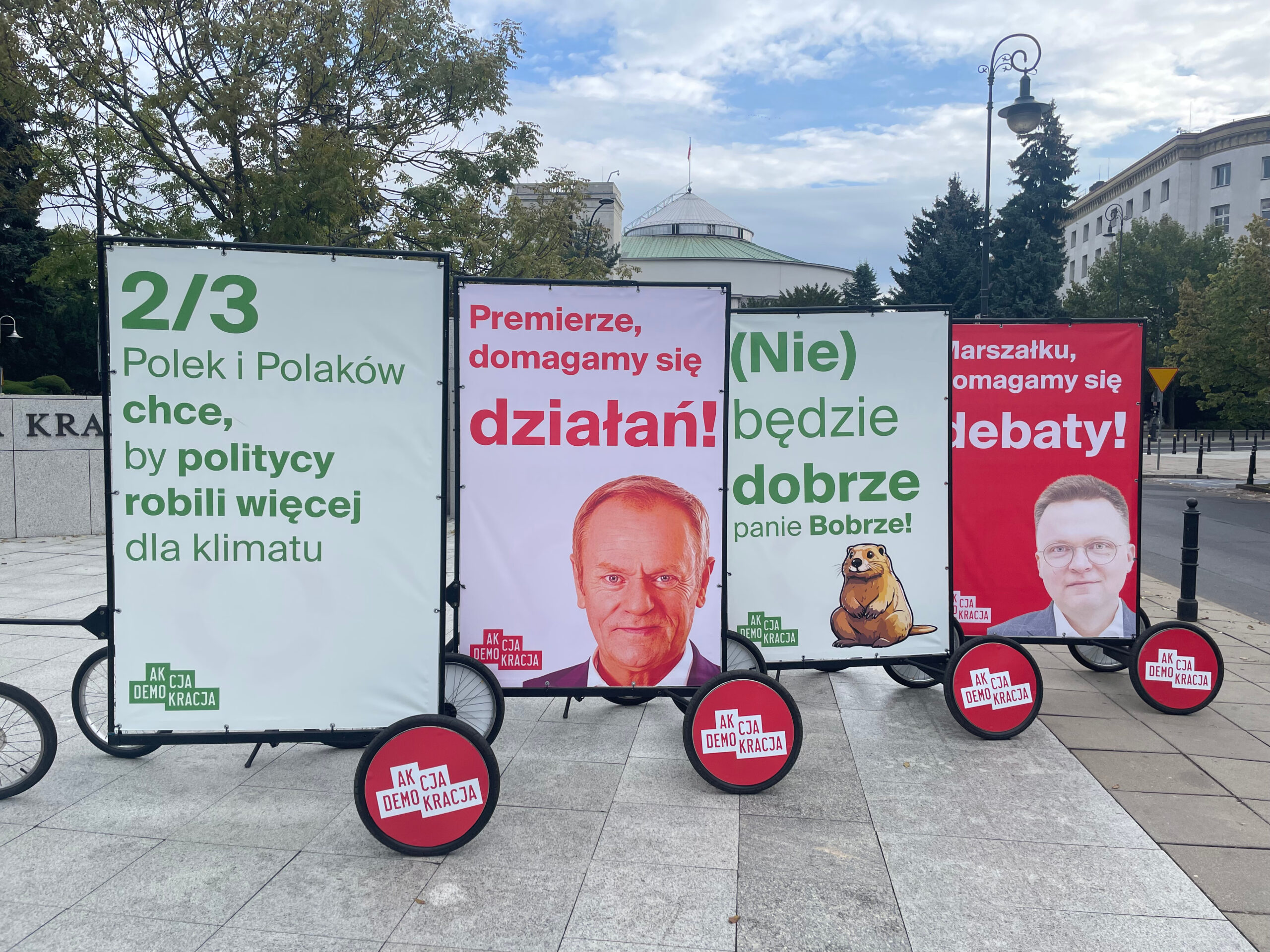 “(Nie) będzie dobrze, panie bobrze” – alarmują działacze społeczni i naukowcy, którzy dziś w pod Sejmem zainaugurowali rowerową kampanię billboardową wzywającą polityków wszystkich opcji do debaty parlamentarnej o przeciwdziałaniu zmianie klimatu. Wzmocnili tym samym apel naukowców do marszałka Sejmu o takie rozmowy, na które od kilku tygodni nie odpowiedział nikt z adresatów. Według organizatorów, wokół tematu klimatu panuje milczenie, które należy jak najszybciej przerwać.