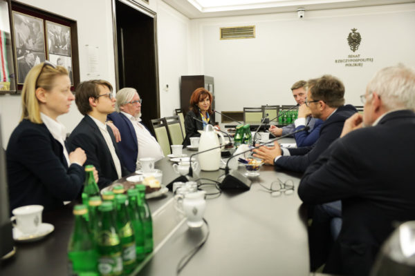 Jako Porozumienie dla Praworządności odwiedziliśmy 27 kwietnia Senat RP. Podczas roboczego spotkania przyjęliśmy mapę drogową dalszej batalii w obronie praworządności w Polsce. Uściśliliśmy szczegóły i tryb procedowania zmian ustawowych, które gwarantować będą szybkie zakończenie rządowego sporu z organami Unii Europejskiej. Gospodynią spotkania była wicemarszałkini Gabriela Morawska – Stanecka, a stanowisko organizacji społecznych reprezentowaliśmy: ja w imieniu Akcji, mec. Michał Wawrykiewicz z Wolnych Sądów, Marta Lempart ze Strajku Kobiet, Kuba Karyś z KOD, Paweł Kasprzak z Obywateli RP i Ewa Marcjoniak ze Stowarzyszenia Adwokatów Defensor Iuris. Ze strony parlamentu obecni byli Marcin Bosacki (KO), Krzysztof Kwiatkowski (niez.) oraz Andrzej Rozenek (PPS). Ekspertem od strony prawnej był prof. Krystian Markiewicz (Stowarzyszenie Sędziów Iustitia).