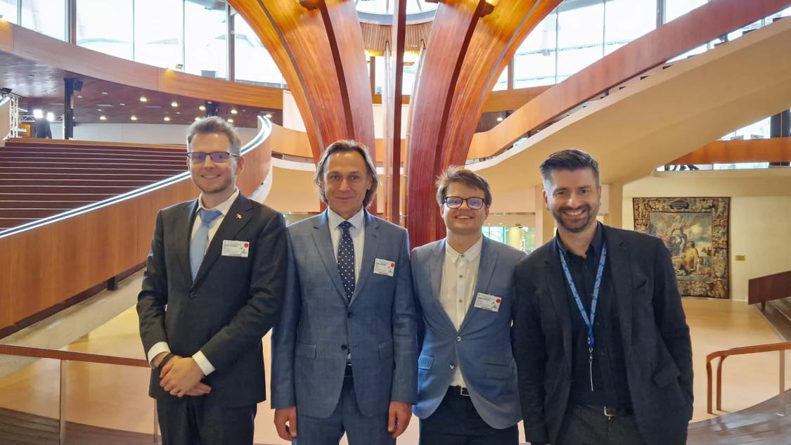 Od prawej: poseł Krzysztof Śmiszek, Jakub Kocjan, sędzia Maciej Ferek i Marcin Mycielski w Strasburgu.
